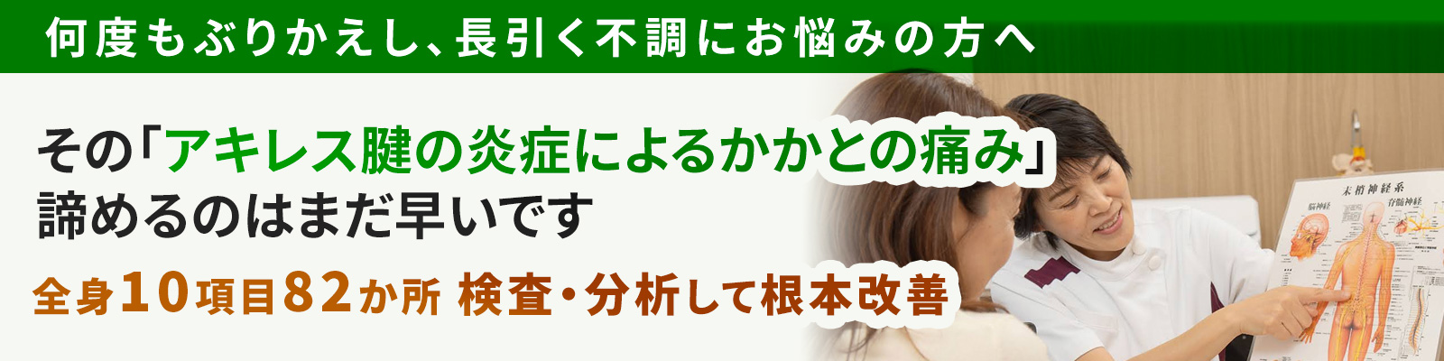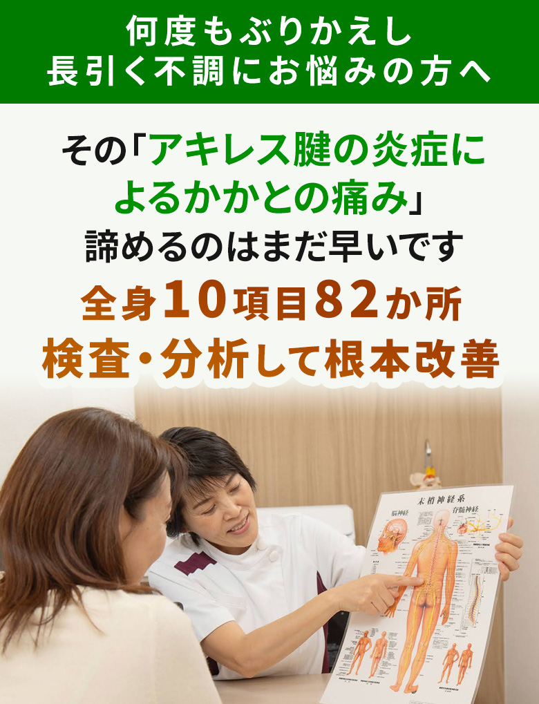 長引くアキレス腱の炎症によるかかとの痛みでも、計画的に施術を行えば改善が期待できます。