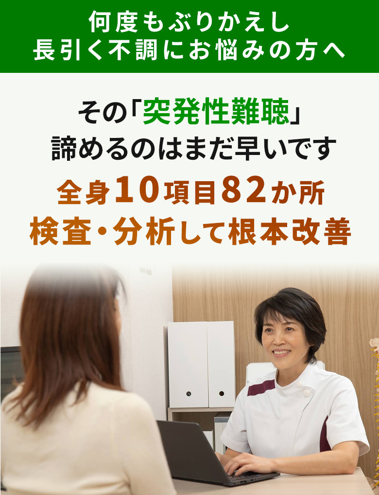 神経伝達の悪化により、自然治癒力が低下した結果の症状として突発性難聴が引き起こされるケースが多いと考えられます。