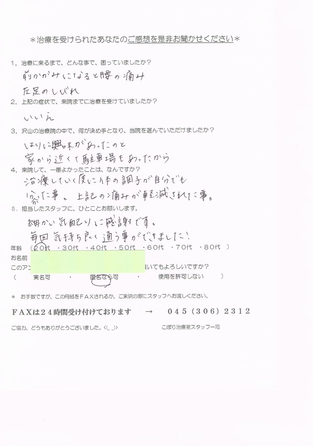 「自分でうまく説明できない腰の痛みを、解ってもらえました。」